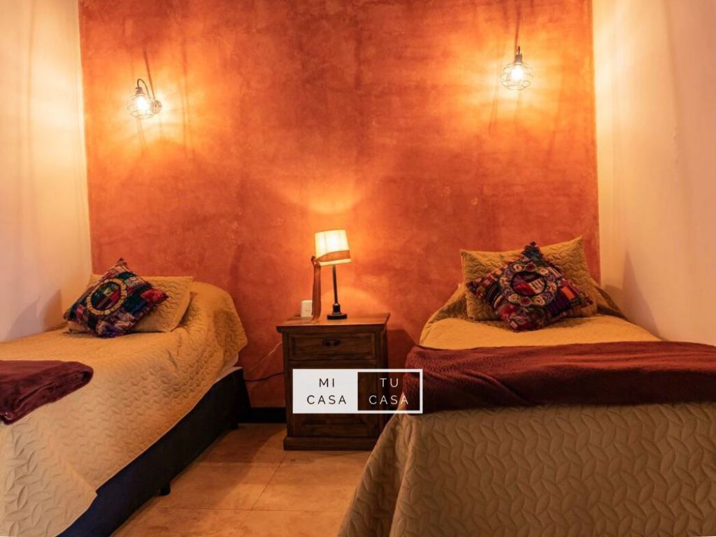 La casa cuenta con amplios ventanales que llenan de luz sus espaciosas y acogedoras habitaciones durante el día, mientras que al atardecer se disfruta de una vista mágica a los volcanes desde la terraza.